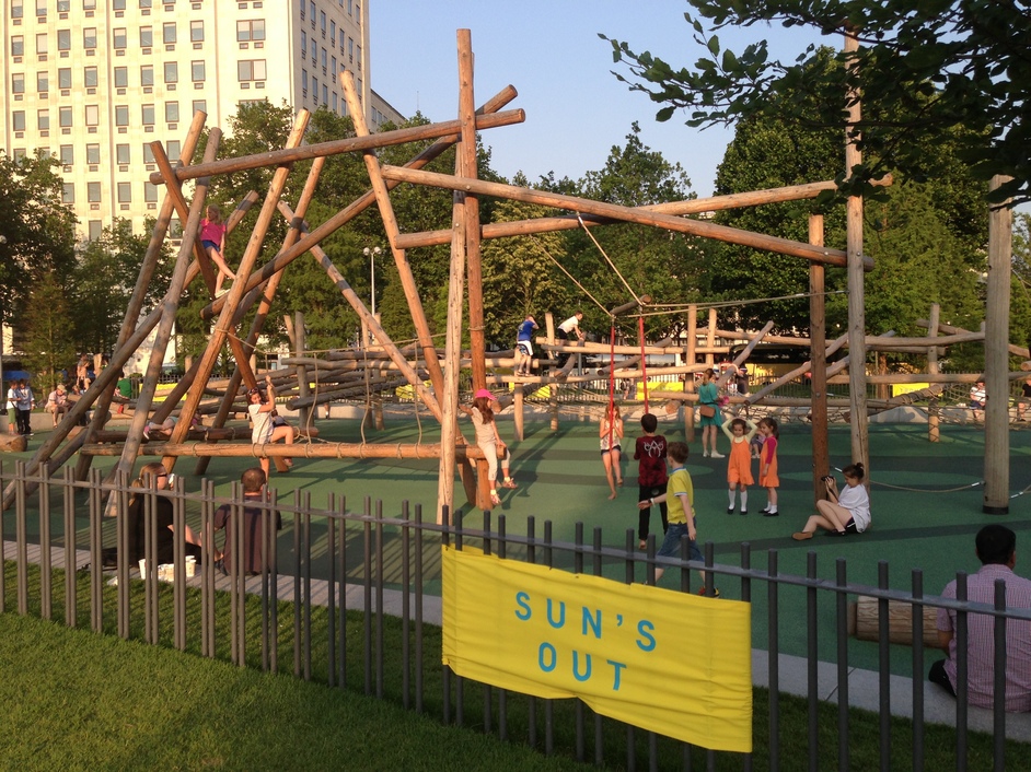 Full of challenging climbing nets balancing logs and jumping from here to there places its the perfect place to blow off the steam from waiting for 3 hours to go up in the eye.